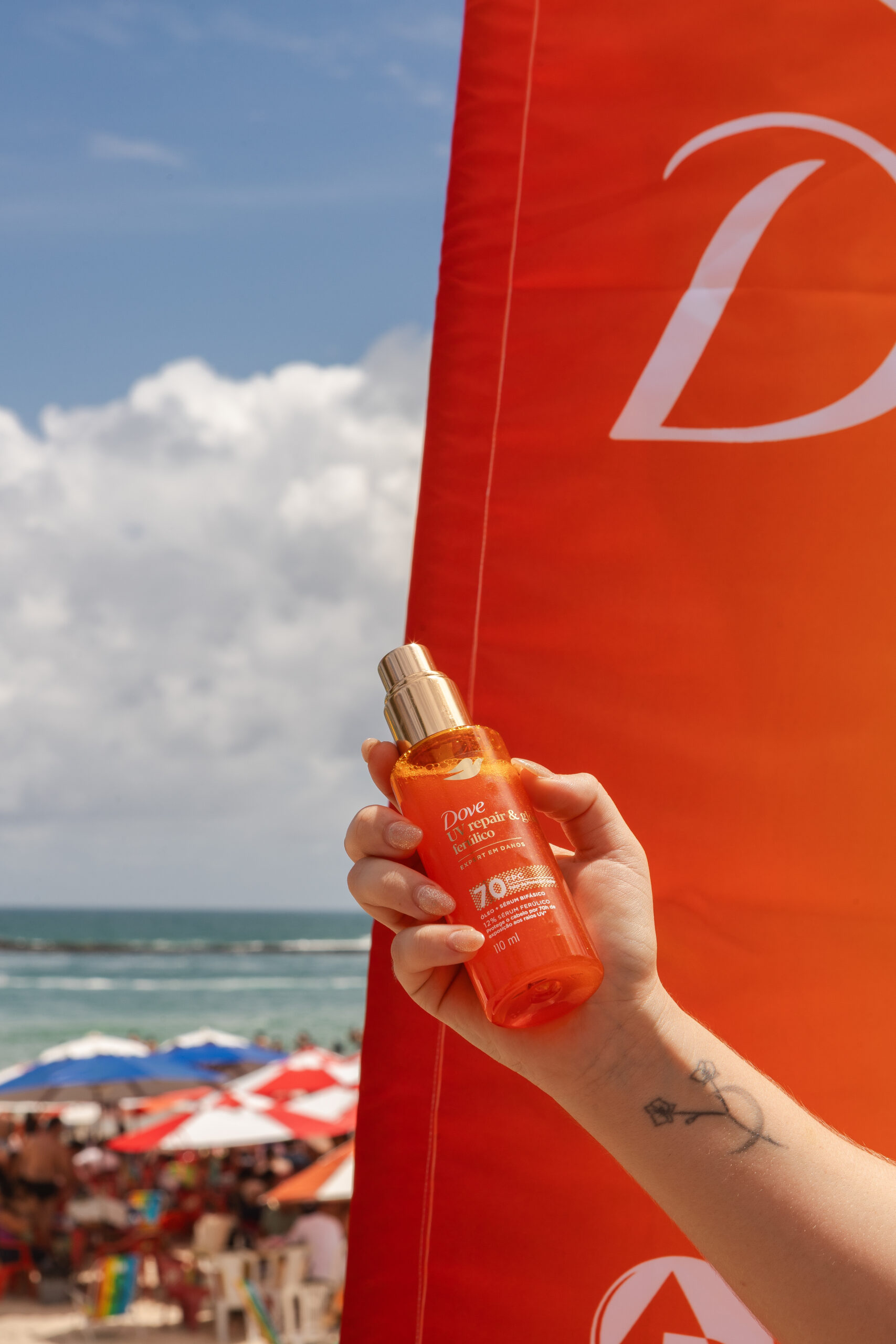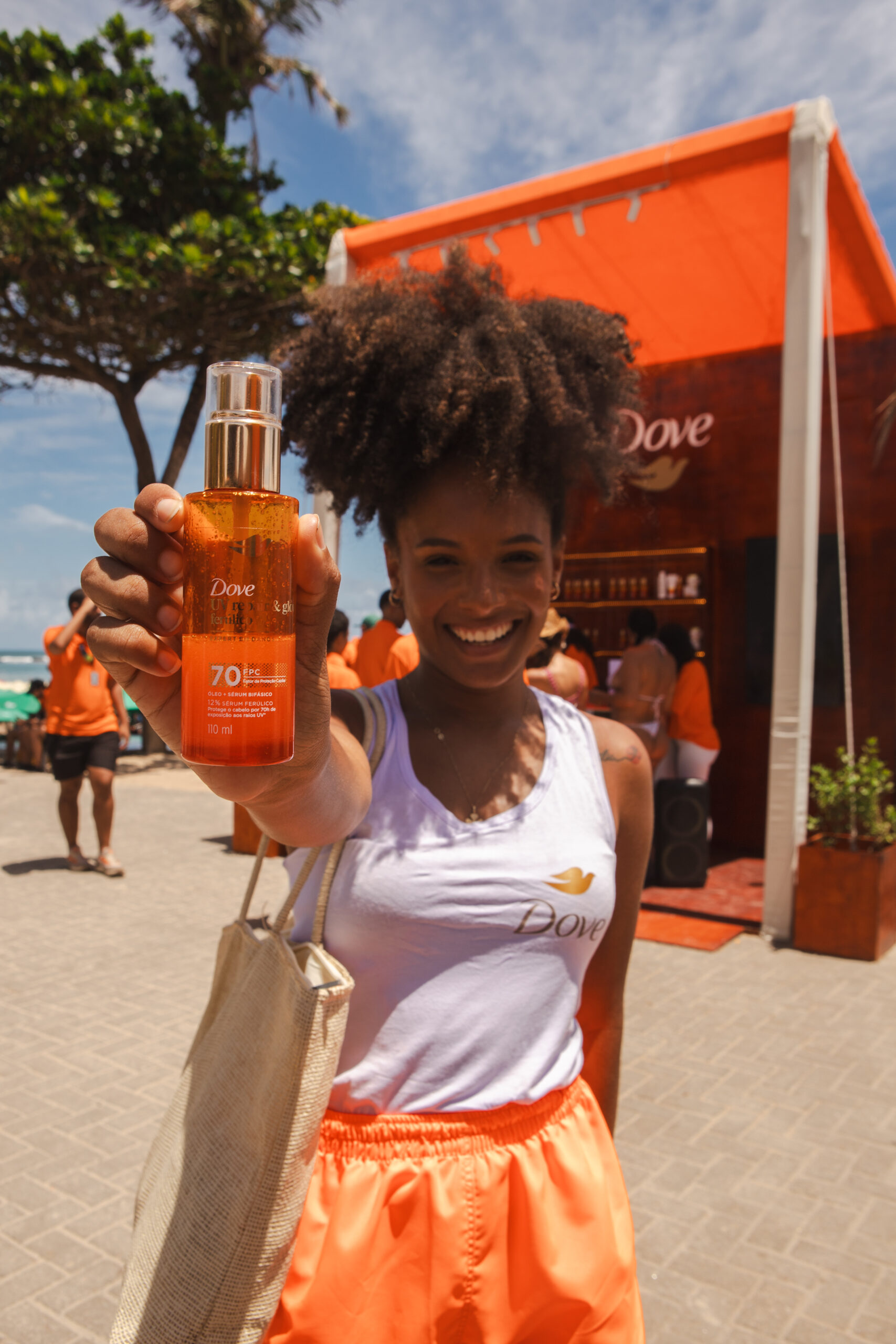 A orla da Praia do Francês, em Marechal Deodoro, foi cenário de uma experiência que foi além da beleza. Nos dias 10 e 11 de janeiro, a Dove realizou a ação Dove UV Repair Glow + Ferúlico, convidando o público a conhecer sua nova linha de cuidados capilares desenvolvida para proteger os fios dos danos causados pela radiação solar — um tema diretamente conectado à rotina de quem vive ou frequenta o litoral.