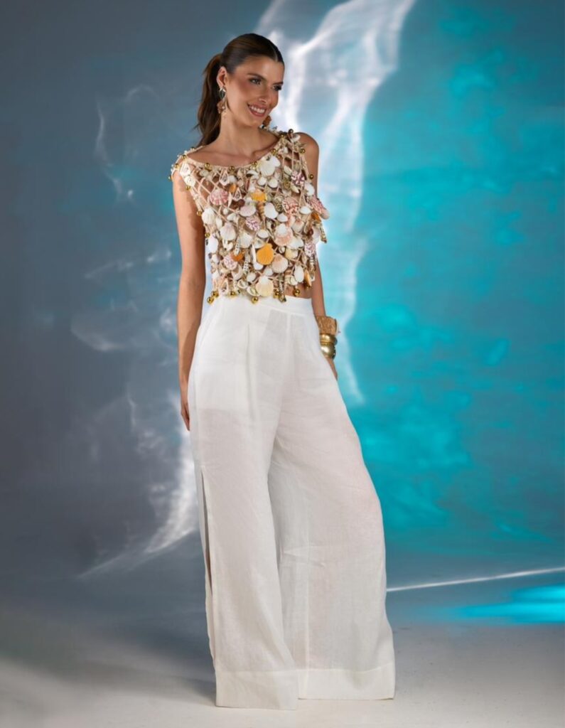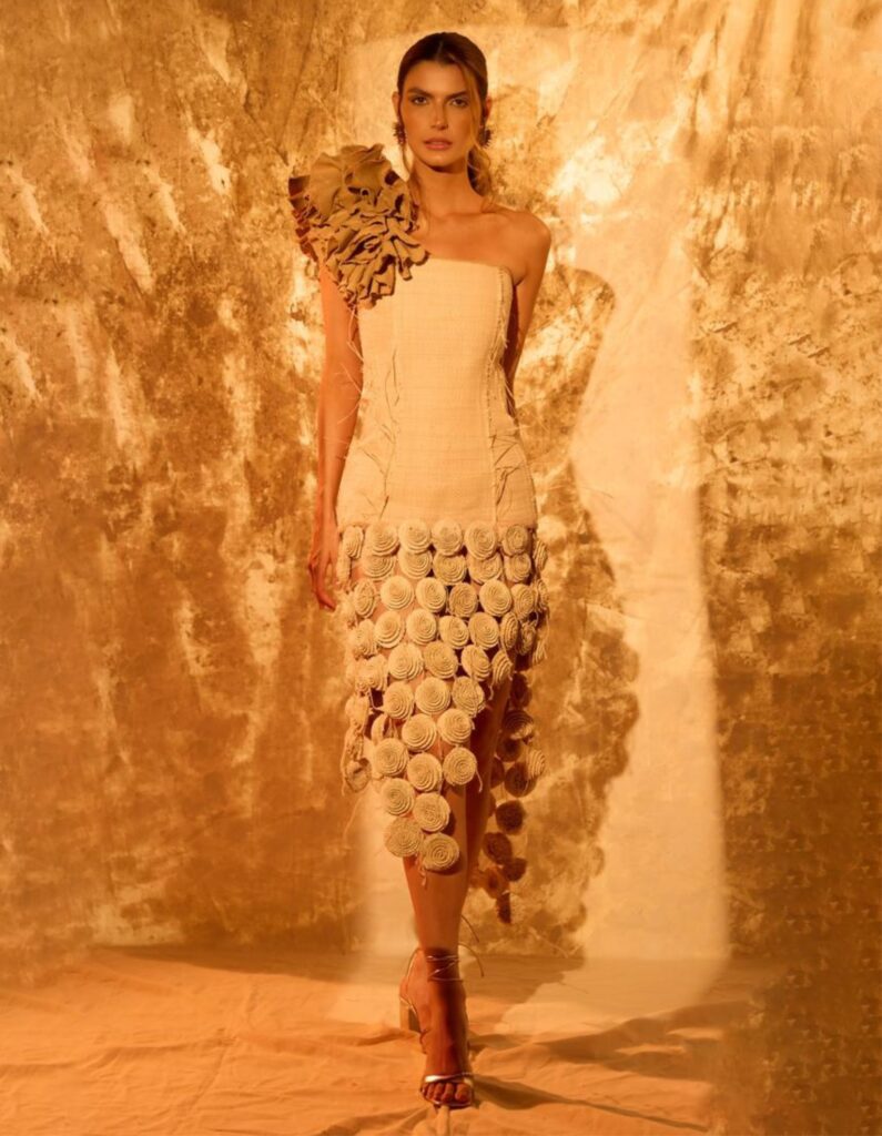 Criada por Antônio Castro, a marca valoriza o artesanato local e coloca artesãs no centro do processo criativo. No look do Verão Massayó, o ouricuri de Coruripe se transforma em textura e expressão cultural, reforçando a identidade alagoana.